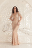 В основе этого вечернего платья лежит высококачественная, полностью вышитая, украшенная ткань, что делает дизайн уникальным, стильным и самым ярким из возможных. Платье имеет длинный рукав, глубокий открытый лиф с V-образным вырезом. Облегающая талия платья создает сексуальный, но скромный образ.