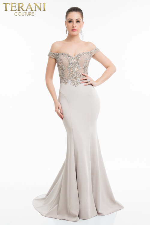 Изумительное платье в пол с открытыми плечами. Потрясающий простой и естественный фасон, художественный крой, изысканная вышивка бисером и идеальный силуэт этого платья заставят не только вас, но и всех окружающих влюбиться в ваш сияющий образ!