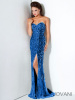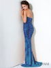 Длинное вечернее платье без бретелей Jovani 4247 А. Полупрозрачная ткань расшита крупными камнями. Лиф "сердечком" акцентирует внимание на груди и открытых плечах. Высокий разрез на юбке приоткрывает бедро при движении и добавляет образу пикантность.