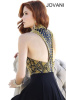 Соблазнительно вечернее платье Jovani 92827 A. Верх платья выполнен из экокожи, вырез "американка", топ полностью расшит "шипами". Юбка из джерси с высоким разрезом на ноге и шлейфом.