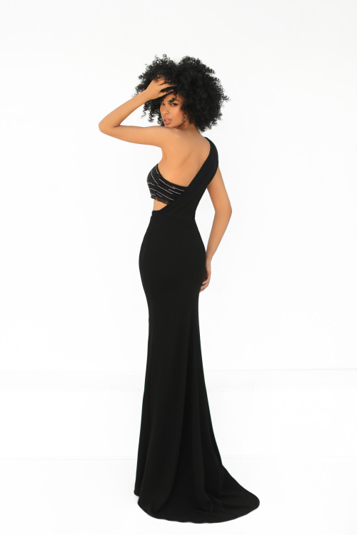 Сенсационное платье силуэта «русалка» с необычным топом-бандо, расшитым бисером, под изящной асимметричной шеей и диагональным вырезом на спине. Это потрясающее платье из крепа привлечет всеобщее внимание благодаря своей длинной облегающей юбке, повторяющей изгибы талии и бедер.