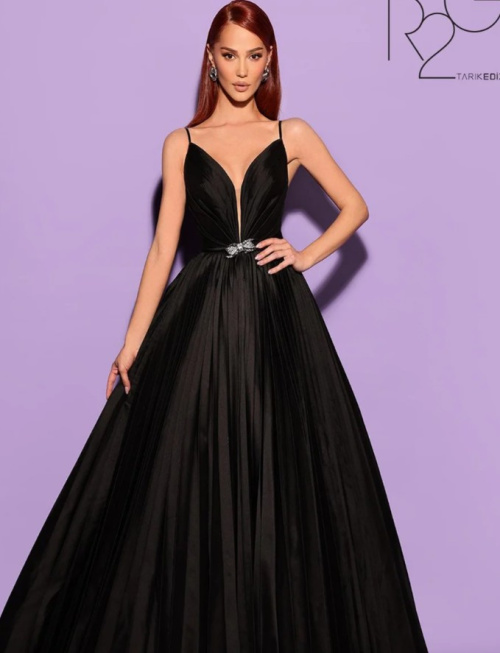. Это длинное пышное платье с элегантной плиссировкой создаёт изящный силуэт, а глубокий вырез на спине и изящные бретели обрамляют ваши плечи, создавая утончённое очарование. Изящный V-образный вырез подчёркивает декольте, сочетая изысканность с утончённой чувственностью. Это платье, идеально подходящее для торжественных случаев, превратит вас в незабываемое воплощение гламура. Каждый стежок этого шедевра – образец безупречного мастерства, приглашающий вас ощутить искусство роскоши, воплощенное в каждой складке и изгибе этого изысканного творения Tarik Ediz.