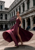 Роскошная ткань цвета черешни подчёркивает глубину образа, сиянье глаз и белизну кожи. Объёмный блузон из марбидо на изящном открытом платье не скрывает прелестные хрупкие плечи и лёгкие движения рук, а приковывает внимание к откровенному декольте и длиной нежной шее. Его можно снять, подставив кожу под солнечные поцелуи или сияние звёзд и софитов.
