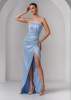 Элегантное женственное платье бюстье из магнуса. Лиф с вертикальными складками и имитацией пояса и длинная юбка на запах с высоким разрезом дополняет образ. Шнуровка по спинке делает максимально идеальную посадку. Открытые плечи, декольте, интригующе подчеркивающее грудь – все это утонченно обыграно, выглядит сногсшибательно и изыскано.