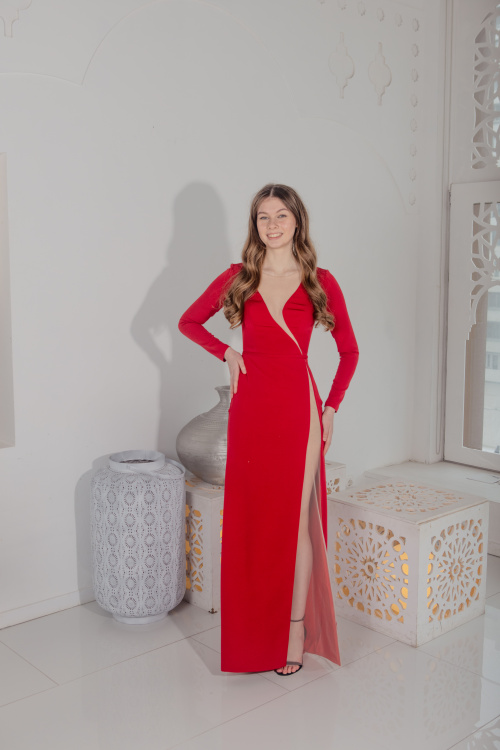 Утонченное платье с волнующим разрезом как сверху, так и снизу подарит вам ощущение привлекательности и уверенности на любой вечеринке.