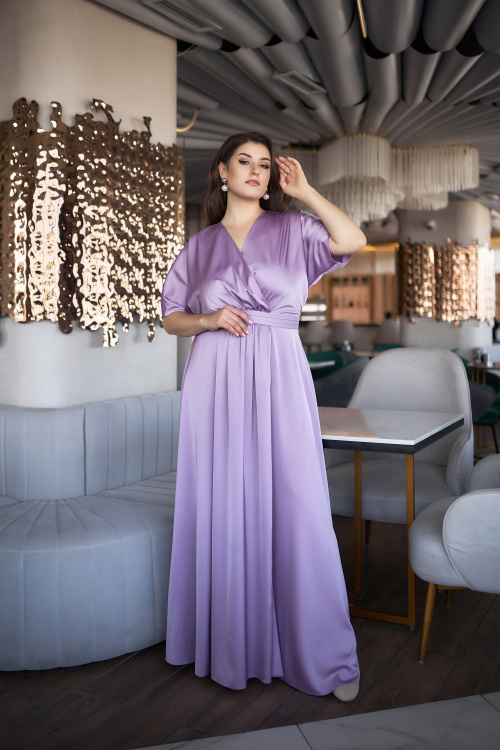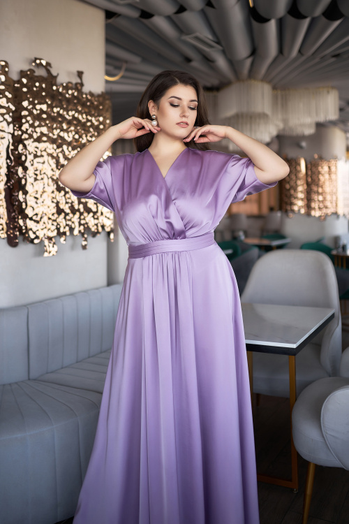 Сияй и покоряй всех вокруг одним движением руки! Лавандовый светящийся атлас раскроет красоту ног в случайном повороте и ослепит всех яркостью твоего образа!