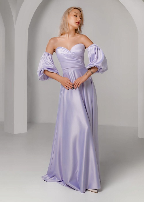 Необычайно женственное платье бюстье с острой линией кроя по лифу из магнуса. Длинная юбка свободного кроя в сочетании со съемными рукавами - буфами идеально дополняют образ, а шнуровка по спинке делает максимально идеальную посадку. Шикарный образ, изысканный и безупречный.