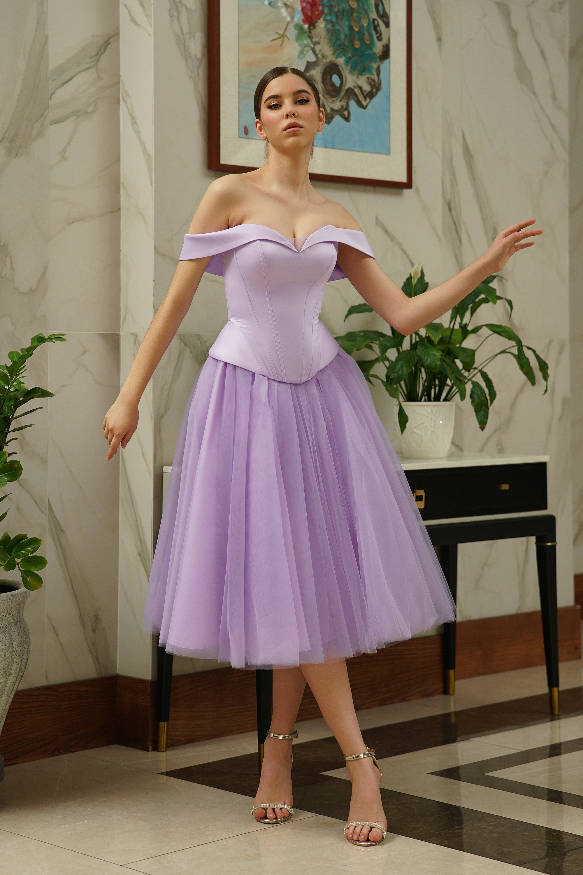 Атласный корсет с юбкой из фатина