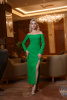 Роскошная утонченная модель облегает фигуру, создавая женственный и величественный силуэт. Объемный жгут из страз, украшающий линию плеч и разрез по ножке, придает образу невероятную элегантность, а открытые плечи и юбка на запах - это история про утонченность и изысканность.