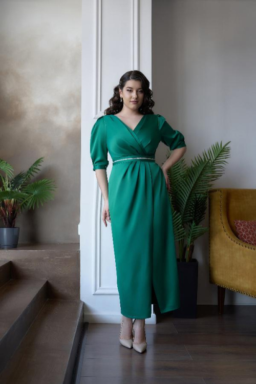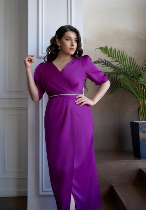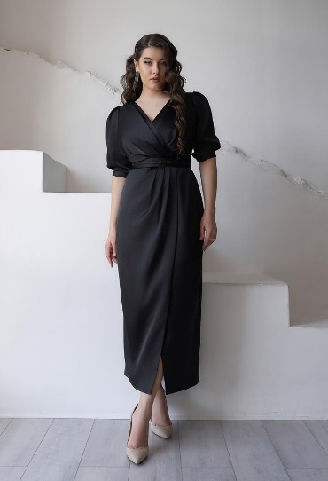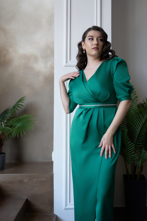 Элегантное эксклюзивное платье с соблазнительным декольте и фантастическим разрезом. Все, что нужно: рукав 3/4, длина. чуть открывающая ножки, акцент на талии в виде пояса - и ты звезда любого вечера!