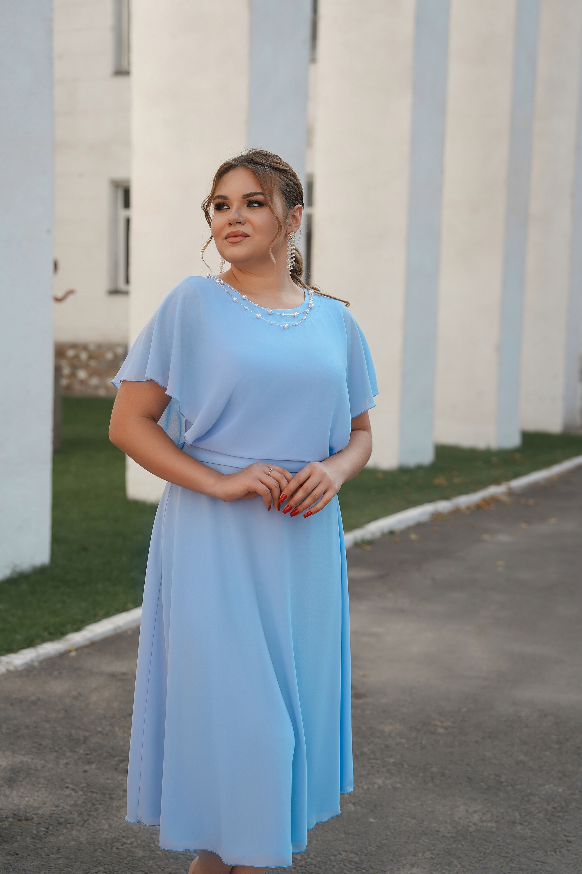 Платье с жемчужным ожерельем