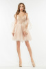 Легкое, сияющее вечернее платье Анжелика от Pauline - вдохновившись образом Анжелики де Скорай, юной возлюбленной короля Людовика XIV дизайнеры создали это роскошное произведение. Сверкающая ткань с глиттерным блеском, сьемные пышные рукава из фатина, открытая спина и короткая пышная юбка. Это платье подчеркивает изящность и хрупкость владелицы, открывает кожу плеч и спины и красивые ножки, а также приковывает внимание к тонкой талии.