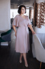 V-образный вырез платья уравновешен широкими рукавами в форме «колокол», а длина «чуть ниже колена» позволяет показать стройные ножки и наиболее удобна при носке.