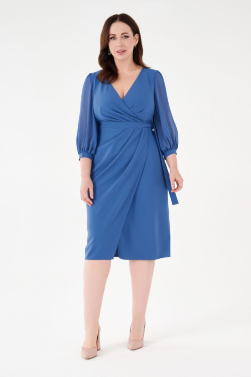 Когда нужно произвести впечатление… без лишних усилий. Тут всё просто, потому что мы уже решили эту проблему за тебя! Мы создали платье безупречного силуэта, с имитацией запашной застёжки и мягкими складками спереди, а также – с идеально скроенной спинкой. Силуэт дополняется воздушными рукавами длиной три четверти, присборенными на небольшую манжету.