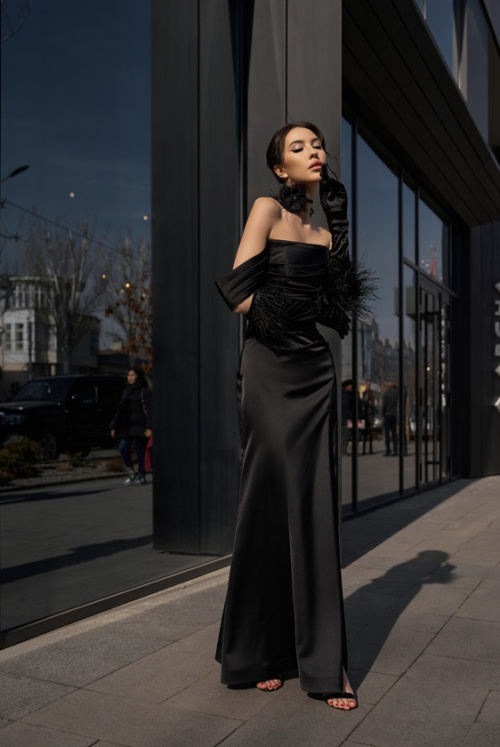 Ослепительное платье из новой коллекции 2023 года! В этой модели собраны все самые модные тенденции: ультрапопулярный фасон рыбка, сияющая гладкая ткань, соблазнительный разрез, ниспадающие плечи, драпировка на декольте и талии покорят взгляды окружающих! Строгость и элегантность в одном лаконичном платье . Платье «рыбка», идеально для тех, кто любит подчеркнуть все достоинства фигуры