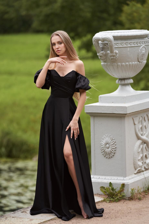 Необычайно женственное платье бюстье с острой линией кроя по лифу из магнуса. Длинная юбка на запах с умопомрачительным разрезом в сочетании с рукавами - буфами идеально дополняют образ, а шнуровка по спинке делает максимально идеальную посадку. Шикарный образ, изысканный и безупречны