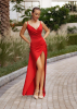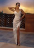 Такой женственный и сексуальный вариант вечернего платья из глитера придется по вкусу довольно смелым особам. Тонкие бретели в сочетании с запахом, декольте, интригующе подчеркивающее грудь – все это утонченно обыграно, выглядит сногсшибательно и изыскано. А высокий разрез на юбке позволит почувствовать себя настоящей обольстительницей.