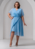 Элегантное 2х фактурное вечернее платье длины миди. Нижнее платье по фигуре, выполнено из креп-стрейча. Верхнее платье из легкого шифона, с лифом на запах и с плавно спадающим рукавчиком. Шикарный лук для вечернего образа.