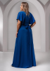 Длинное вечернее платье из матового шелка. Лиф с легкими спадающими рукавами в сочетании с длинной юбкой на запах идеально подчеркивает вечерний образ. Оригинальность модели придает вертикальный волан по разрезу. Вся суть этого платья - подчеркнуть достоинства и скрыть недостатки.
