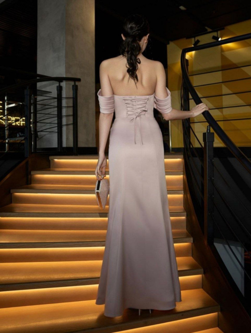 Ослепительное платье из новой коллекции 2023 года! В этой модели собраны все самые модные тенденции: ультрапопулярный фасон рыбка, сияющая гладкая ткань, соблазнительный разрез, ниспадающие плечи, драпировка на декольте и талии покорят взгляды окружающих! Строгость и элегантность в одном лаконичном платье . Платье «рыбка», идеально для тех, кто любит подчеркнуть все достоинства фигуры