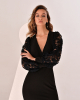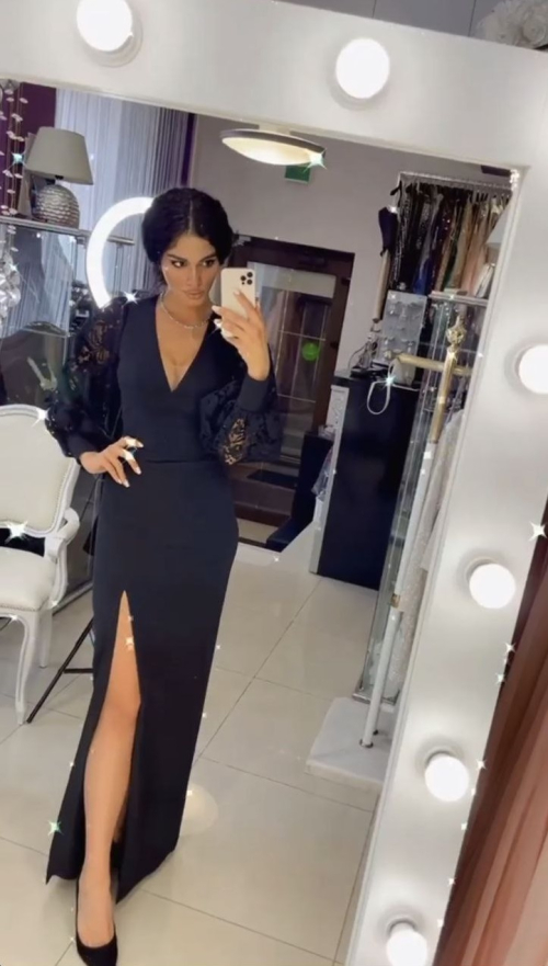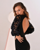 Вечернее платье-футляр с открытой спиной, объемными воздушными рукавами из кружева, красивым V-образным вырезом и подчеркнутой талией. В этой модели соединено все, что делает ваш образ утонченным и привлекательным.