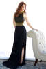 Соблазнительно вечернее платье Jovani 92827 A. Верх платья выполнен из экокожи, вырез "американка", топ полностью расшит "шипами". Юбка из джерси с высоким разрезом на ноге и шлейфом.