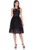 Коктельное платье фасона "колокольчик". Декорировано поясом и кружевом на юбке и лифе. Платье представлено в черном цвете.
