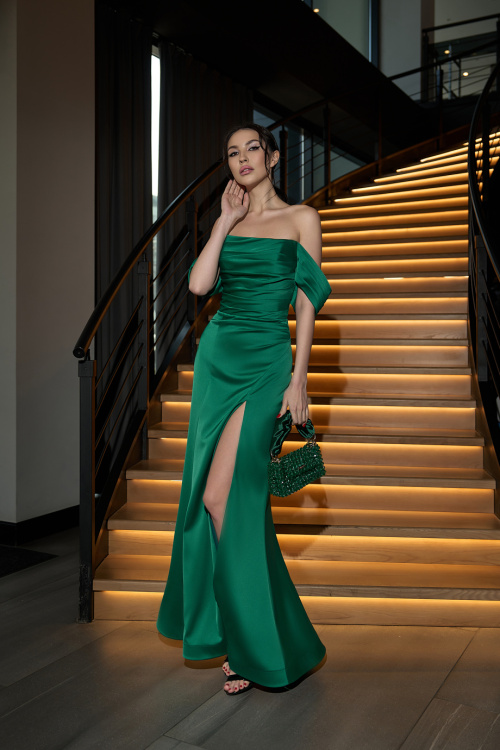 Ослепительное платье из новой коллекции 2023 года! В этой модели собраны все самые модные тенденции: ультрапопулярный фасон рыбка, сияющая гладкая ткань, соблазнительный разрез, ниспадающие плечи, драпировка на декольте и талии покорят взгляды окружающих! Строгость и элегантность в одном лаконичном платье . Платье «рыбка», идеально для тех, кто любит подчеркнуть все достоинства фигуры