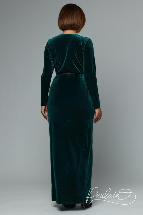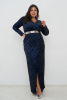 Блестящее длинное платье с разрезом на ноге Гера стильный хит данного сезона. Модель с лаконичными длинными рукавами на талии схвачена гладким металлическим поясом. Небольшой V-образный вырез в области декольте выглядит утончённо, он органично сочетается с прямыми рукавами. Модель также представлена в больших размерах.
