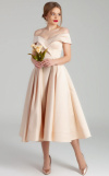 Золотистое коктейльное платье с открытыми плечами в длине миди. Прекрасное вечернее платье для вечеринки, выпускного бала или похода в изысканный ресторан. Сияйте и покоряйте сердце вашего избранника и ловите восхищенные взгляды окружающих.