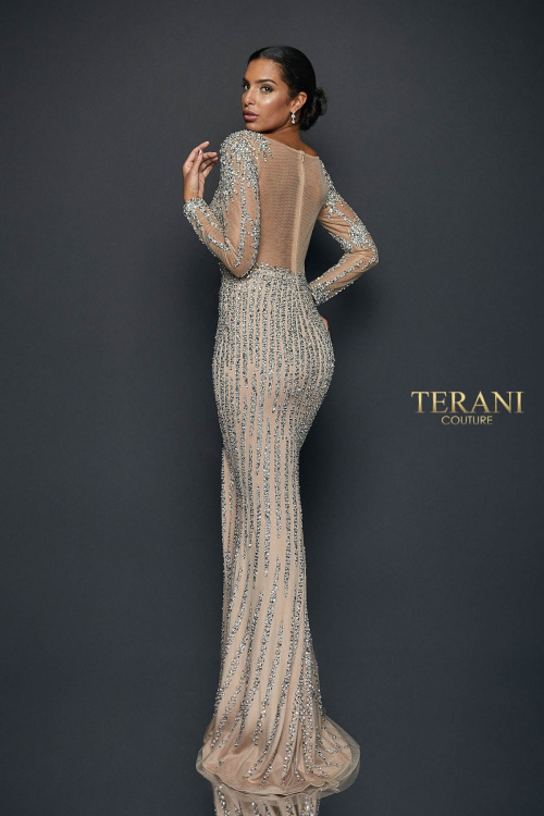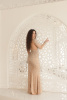В основе этого вечернего платья лежит высококачественная, полностью вышитая, украшенная ткань, что делает дизайн уникальным, стильным и самым ярким из возможных. Платье имеет длинный рукав, глубокий открытый лиф с V-образным вырезом. Облегающая талия платья создает сексуальный, но скромный образ.