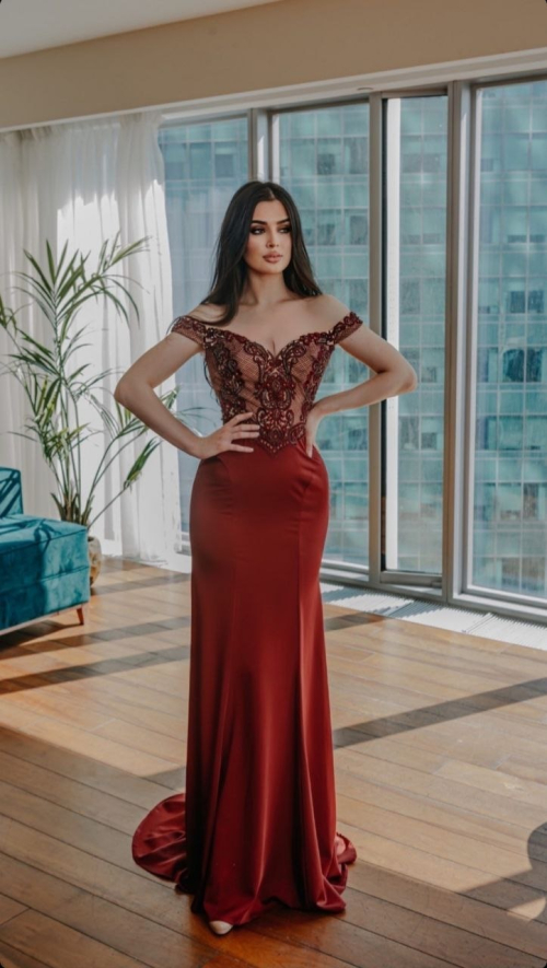 Изумительное платье в пол с открытыми плечами. Потрясающий простой и естественный фасон, художественный крой, изысканная вышивка бисером и идеальный силуэт этого платья заставят не только вас, но и всех окружающих влюбиться в ваш сияющий образ!