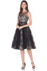 Коктельное платье А-образного силуэта. Платье выполнено из агранзы с цветочным узором, представлено в черном цвете.