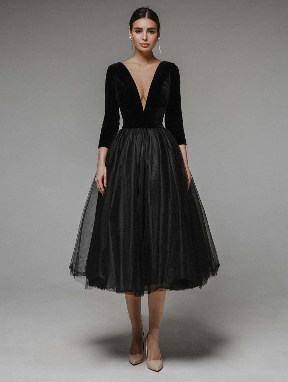 Чёрное бархатное платье с фатиновой юбкой