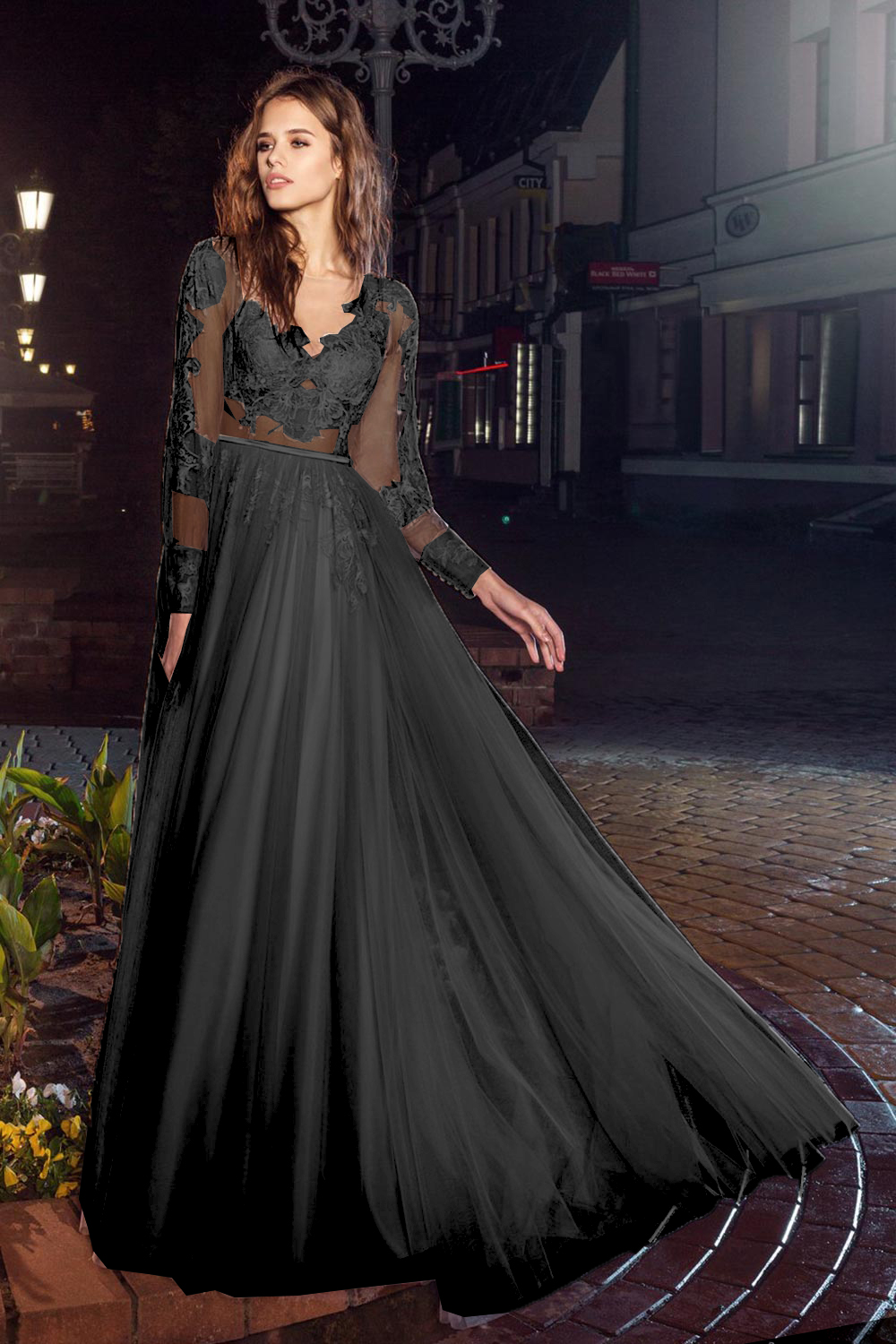 Чёрное кружевное платье