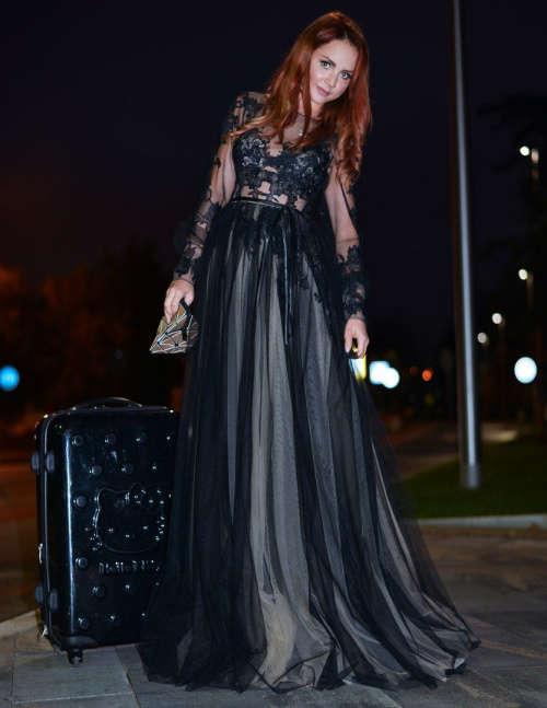 Верх платья выполнен из итальянского кружева, низ из тюля.