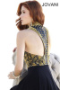Соблазнительно вечернее платье Jovani 92827 A. Верх платья выполнен из экокожи, вырез "американка", топ полностью расшит "шипами". Юбка из джерси с высоким разрезом на ноге и шлейфом.