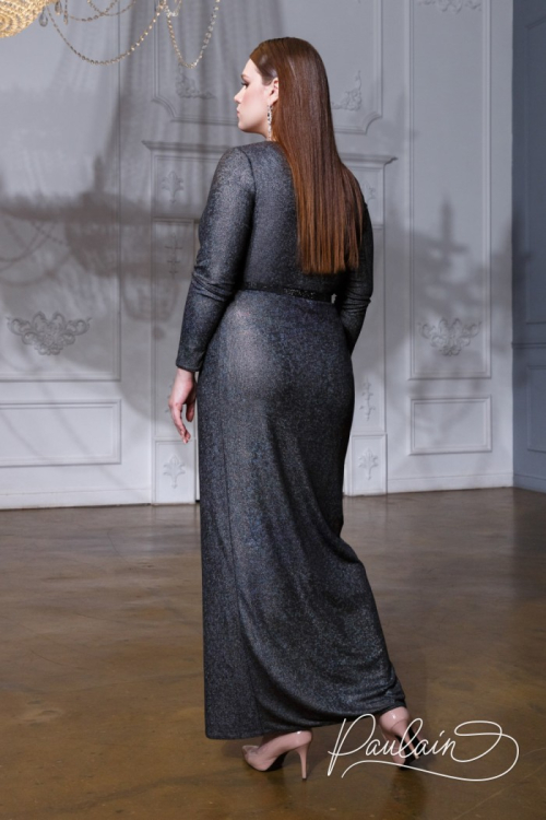 Взаимодействие ткани и кроя в этом вечернем платье в пол подчеркнут вашу фигуру, сделают силуэт скульптурным. При желании сделать акцент на талии поможет металлический или стразовый пояс, который может быть в тон наряду или контрастной расцветки. Металлическая нить в составе ткани придаёт платью характерный благородный блеск, играющий полутонами при движении. В платье «Петра» вы непременно станете источником притяжения.