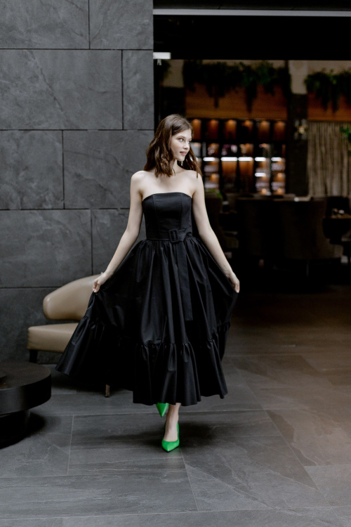 Чёрное пышное миди с поясом