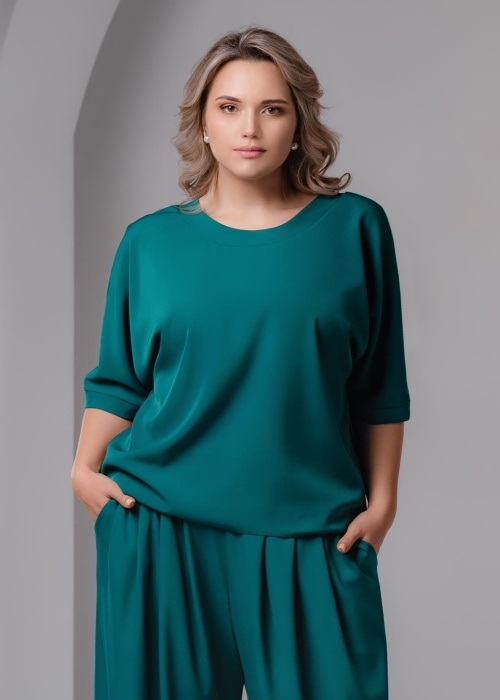 Брючный комплект из шелк - плазмы идеальный вариант для любой девушки. Блузка со спущенным рукавом и широкие брюки прямого кроя на резинке- удобный и практичный выбор современного образа.