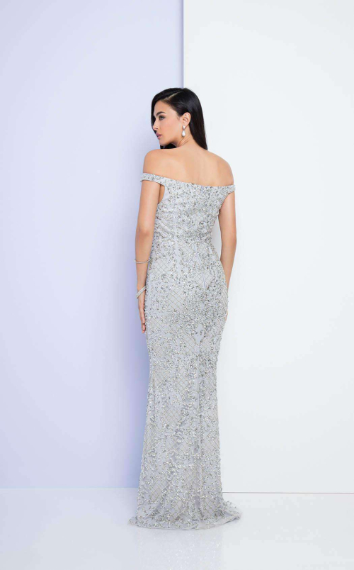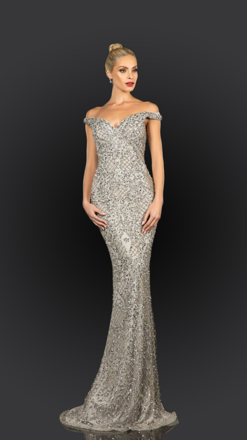 Длинное вечернее платье без рукавов, полностью инкрустированное бисером, разработанное Terani Couture