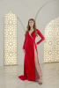 Красное платье с вырезами и рукавом