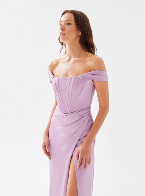 Элегантное платье в полный рост от Tarik Ediz 52018 - это утреннее платье. Это платье с открытыми плечами и прямым вырезом. Облегающий лиф и юбка А-силуэта полной длины с разрезом подчеркивают естественную линию талии. Платье лучше всего подходит для официальной вечеринки.