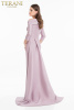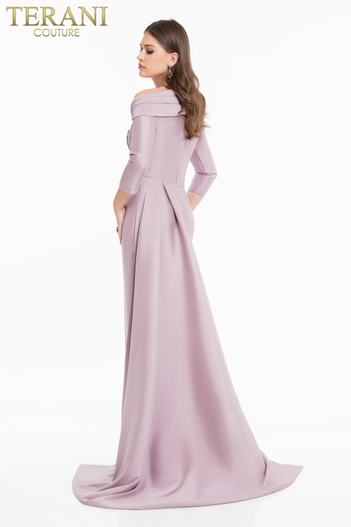 Окутайте себя роскошью, которая сделает вас воплощением изысканности в этом изысканном шедевре Terani Couture 1821M7550. Красиво драпированное, создающее мягкую асимметричную вставку, это великолепное изделие демонстрирует вырез с открытыми плечами, подчеркнутый украшенной бисером листвой. Присборенный сбоку дизайн, украшенный драгоценными камнями, подчеркивает драпировку вдоль юбки, а узкие рукава в четверть рукава идеально обрамляют это потрясающее платье. Юбка-футляр может похвастаться соблазнительным высоким разрезом, а каскад складок на задней панели создает шлейф в виде стреловидного шлейфа. Украсьте это безукоризненное мероприятие толпой поклонников в этом творении Terani Couture 1821M7550. Модель одета в лиловый цвет.