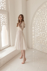 Прекрасная эльфийская принцесса Арвен казалась нежной и хрупкой, любовь к Арагорну приумножила её силы, сделала преданной, могущественной и великодушной. Её называли «вечерней звездой», тихое сияние которой изумительно точно передаёт струящаяся глиттерная ткань. Лаконичный полупрозрачный лиф оттенит загорелую кожу или подчеркнёт её белизну, пышная юбка привлечёт внимание к длинным ногам, небольшой шлейф сделает походку лёгкой, а образ восхитительно романтичным.