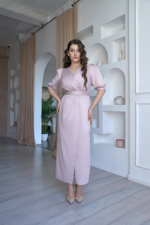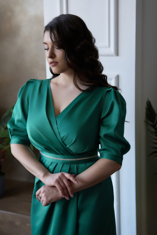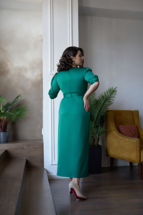 Элегантное эксклюзивное платье с соблазнительным декольте и фантастическим разрезом. Все, что нужно: рукав 3/4, длина. чуть открывающая ножки, акцент на талии в виде пояса - и ты звезда любого вечера!