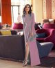 Длинное закрытое вечернее платье с изюминкой из ассиметриной перьевой вставки, плавно переходящей в изысканный разрез.