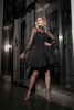Универсальное платье найдено! В этой модели сочетается завуалированный сеткой верх и короткая длина. Черный цвет и море блесток. В дополнение можно надеть нижнюю юбку для большей пышности. Накидка-сетка также снимается. Комбинируй на свой вкус!