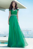 Стильное вечернее платье с коротким рукавом Alyce Paris 6333. Платье из легкого шифона верх декорирован прозрачной сеткой, спина с эффектом "обнаженного тела", шея декорирована стразами "под колье". Талия так же украшена поясом из страз. Многослойная юбка со шлейфом.