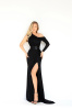 Выглядите совершенно в элегантном чёрном платье. Это великолепное изделие отличается прямым силуэтом и блестящими акцентами. Лиф с длинными рукавами имеет асимметричный вырез и естественную талию.